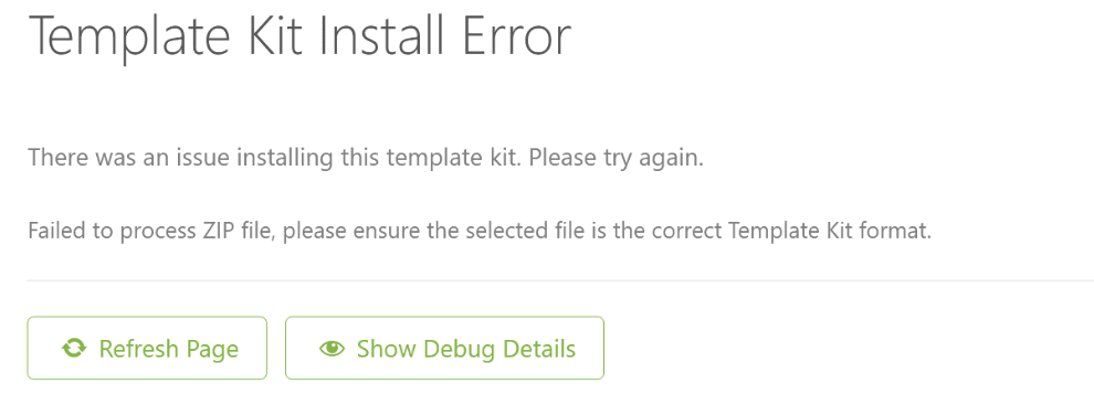Error: Failed to process ZIP file, please ensure the selected file is the correct Template Kit format